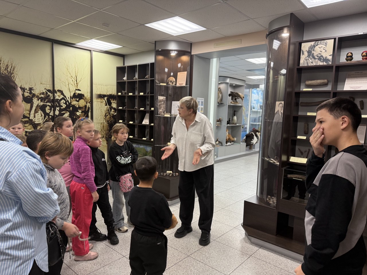 Для обучающихся дети была проведена экскурсия по экспозиционным залам музея, в ходе которой познакомились с историей района и города, древней историей, флорой и фауной.