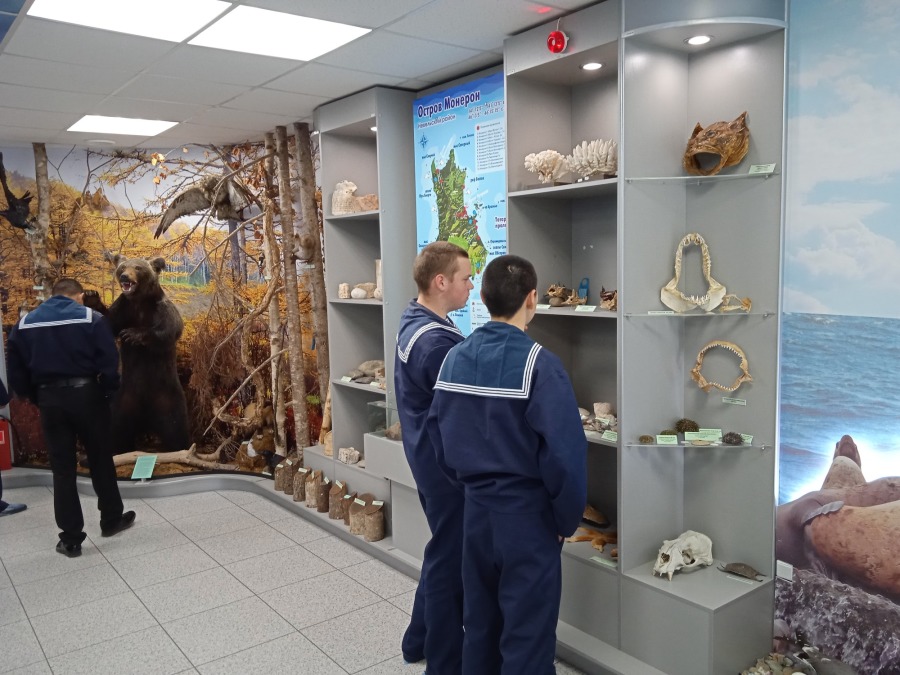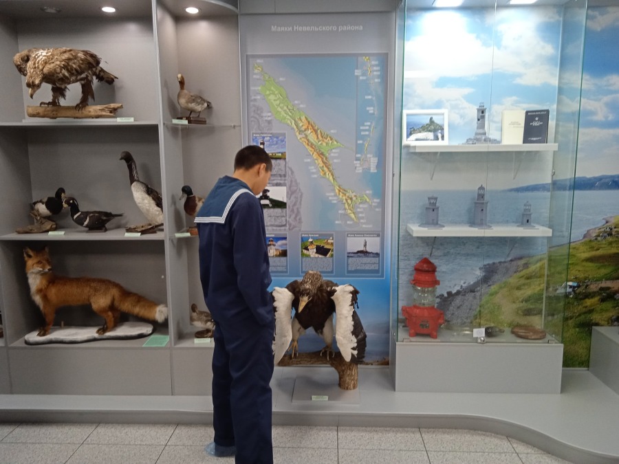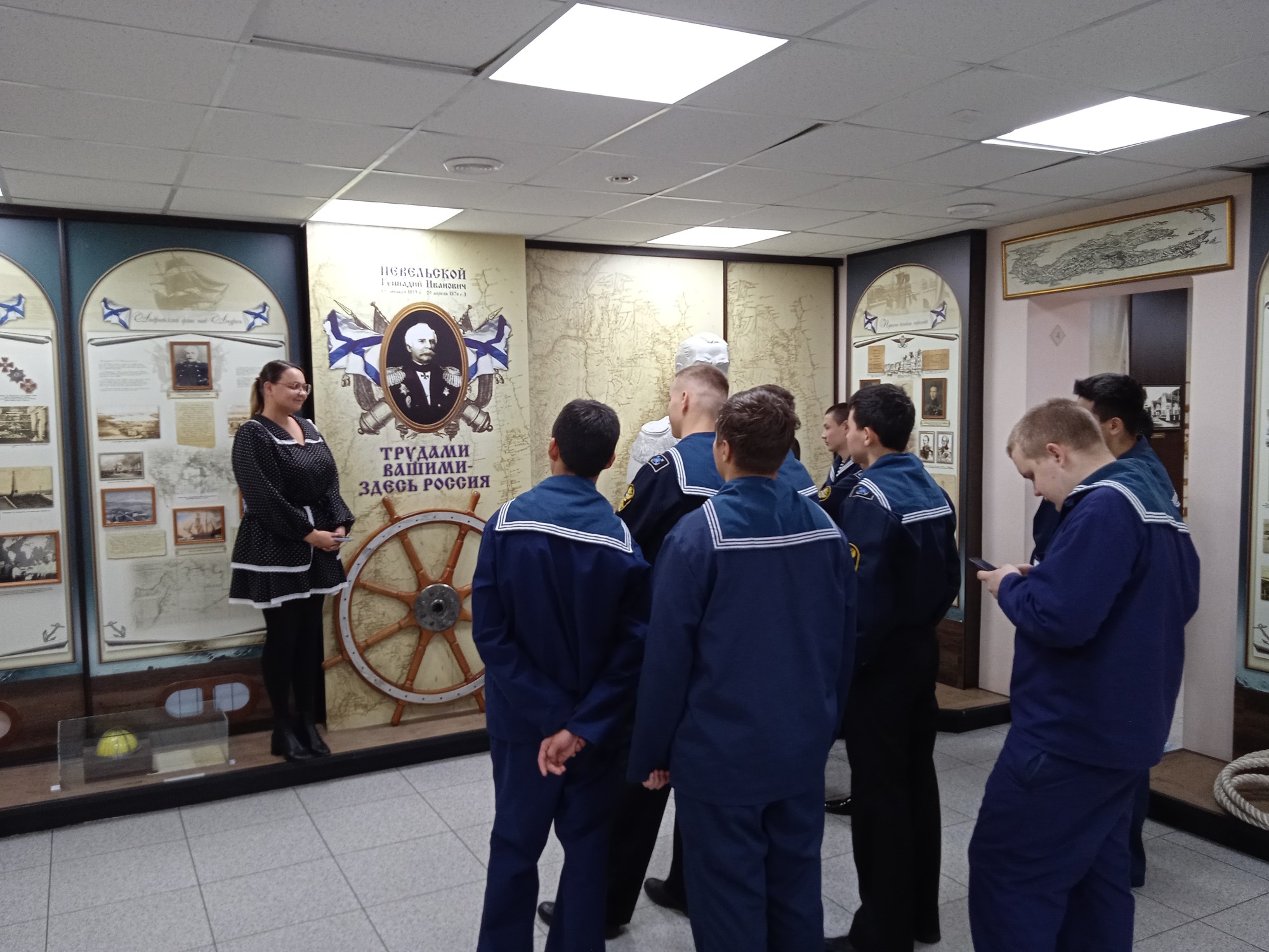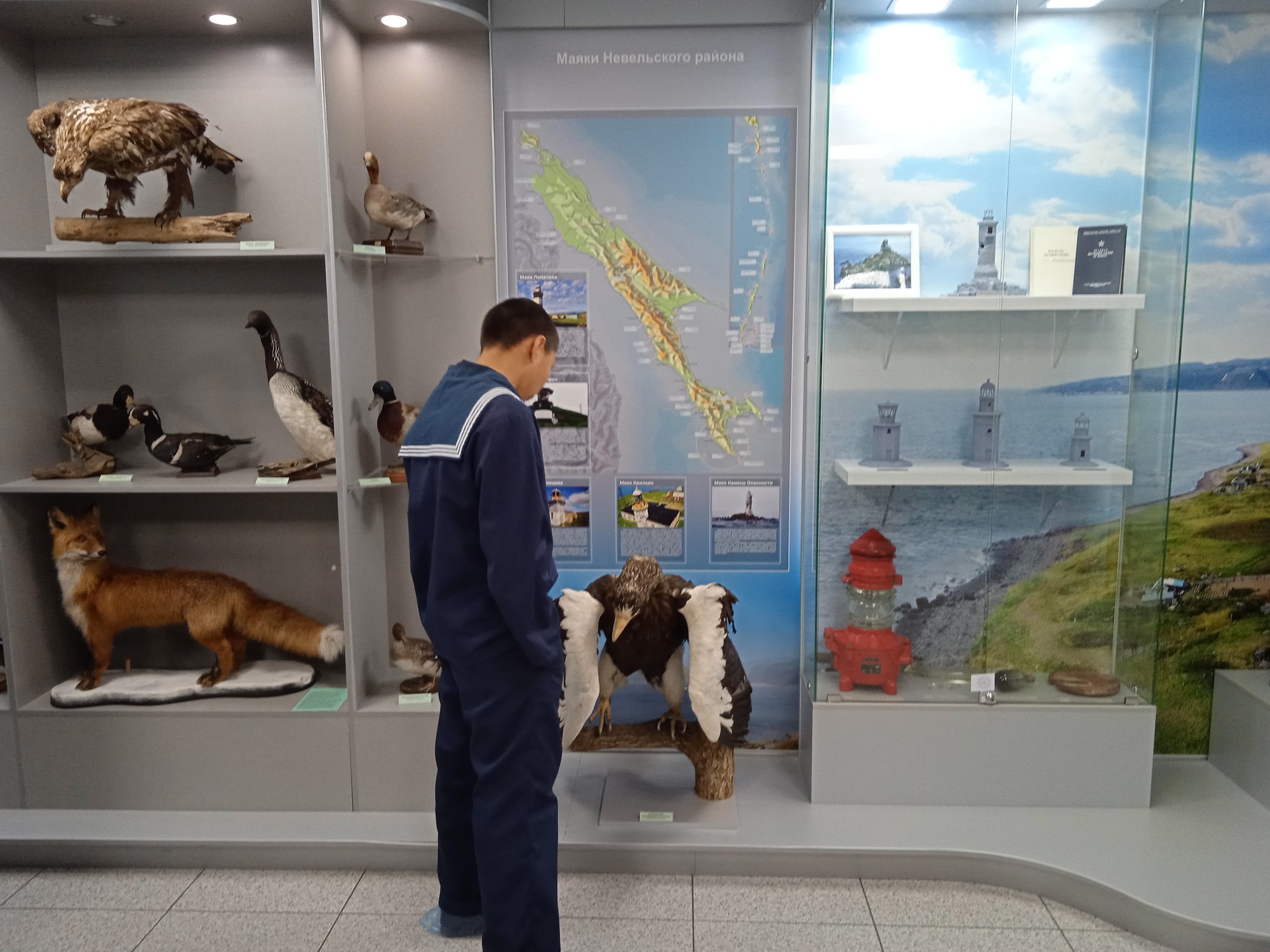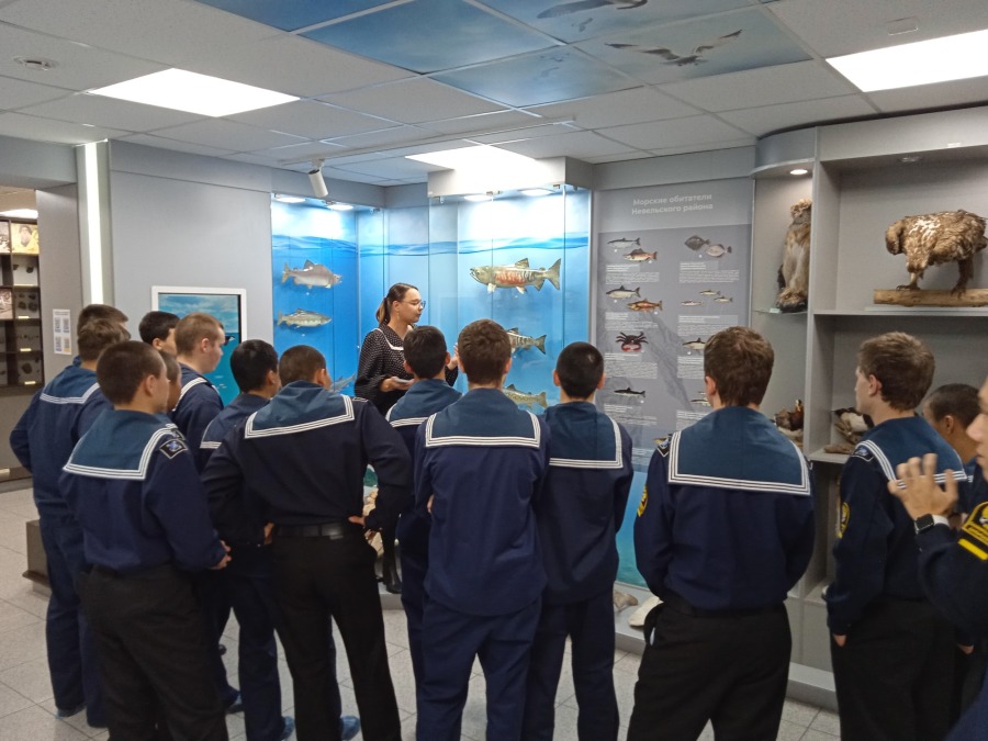 В Невельском историко-краеведческом музее, в рамках реализации федеральной программы «Пушкинская карта», для курсантов «Сахалинского морского колледжа» прошла обзорная экскурсия по экспозиционным залам.