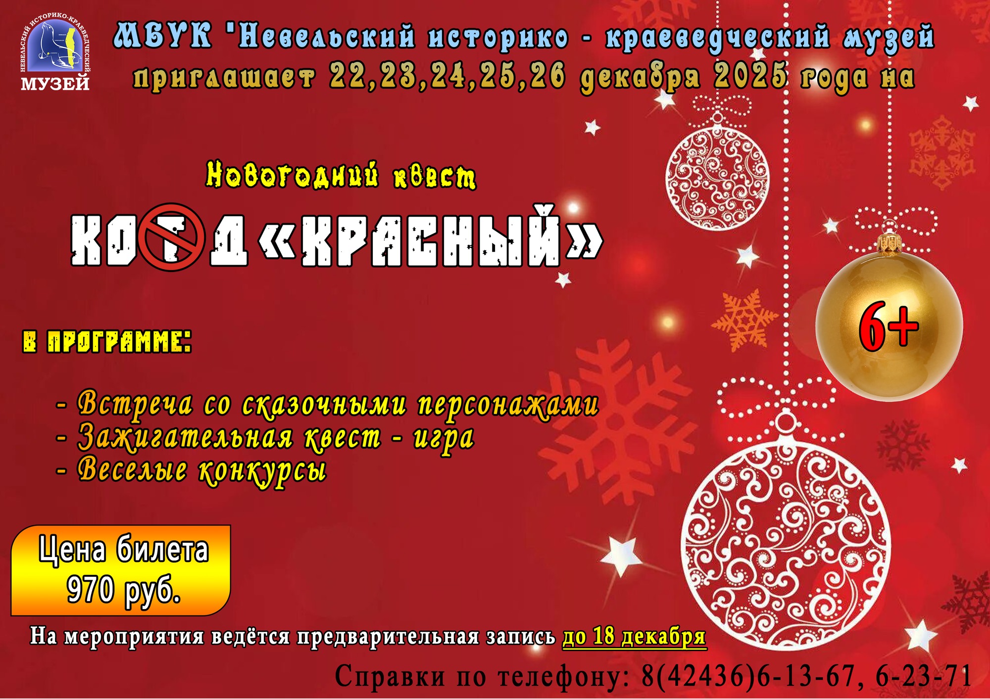 Невельский историко-краеведческий музей приглашает ваших детей на на увлекательное новогоднее приключение! Юные участники погрузятся в мир волшебства и тайн, разгадывая загадки и выполняя интересные задания в атмосфере праздничного настроения.