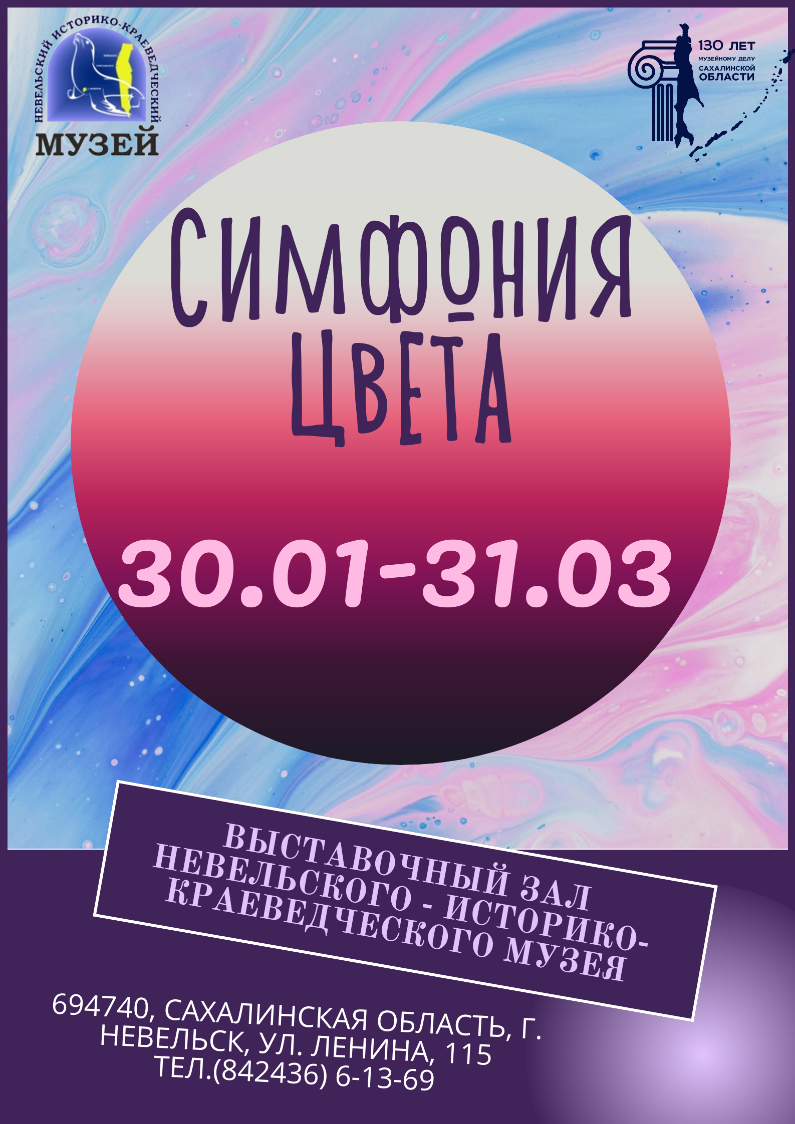 Невельский историко-краеведческий музей представляет выставку «Симфония цвета», демонстрирующую богатство живописных работ из своих фондов. Экспозиция объединяет творчество пяти выдающихся сахалинских художников: Гиви Михайловича Манткавы, Алексея Алексеевича Кузнецова, Олега Николаевича Папузина, Анатолия Алексеевича Климанова и Николая Бочарова-Федореева. Особое место в их произведениях занимают виды Невельского района, которые служат отражением глубокой связи художников с природой и их уникального взгляда на ее красоту. Погрузитесь в мир, где каждый цвет имеет свой звук, а каждая линия – свою мелодию, создавая гармоничное целое.