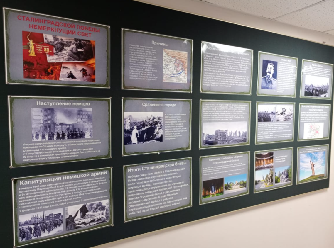 В это памятный Сотрудники Невельского историко-краеведческого музея провели квиз -игру для участников мероприятия по фотодокументальной выставке «Сталинградской Победы немеркнущий свет». На каждом из стендов, в хронологическом порядке были представлены фотографии и документы, отражающие ключевые этапы Сталинградской битвы, начиная с массированной атаки гитлеровской авиации, произошедшей 23 августа 1942 года, и заканчивая восстановлением города-героя после окончания боев.